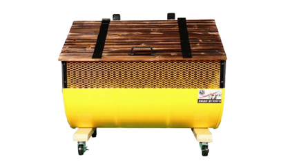 火力調整ができるように炭火の位置をアップダウンできるようにしました。物を置くスペースの確保と下にキャスターを付け移動が楽にできるようになっています
